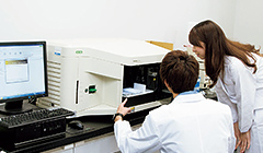 遺伝子組み換え実験に必要な実験機器を備えた共通実験施設です。DNA配列解析装置(DNAシーケンサー)をはじめ、分子生物学的解析に欠かすことの出来ない機器が整備されています。