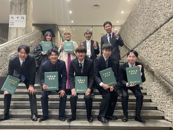 2023年3月21日に新潟県民会館において、2022年度卒業式・学位授与式が挙行されました。本研究室から8名の学部卒業生、1名の博士前期課程修了生をお送りできて大変嬉しく思います。