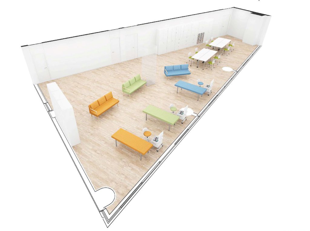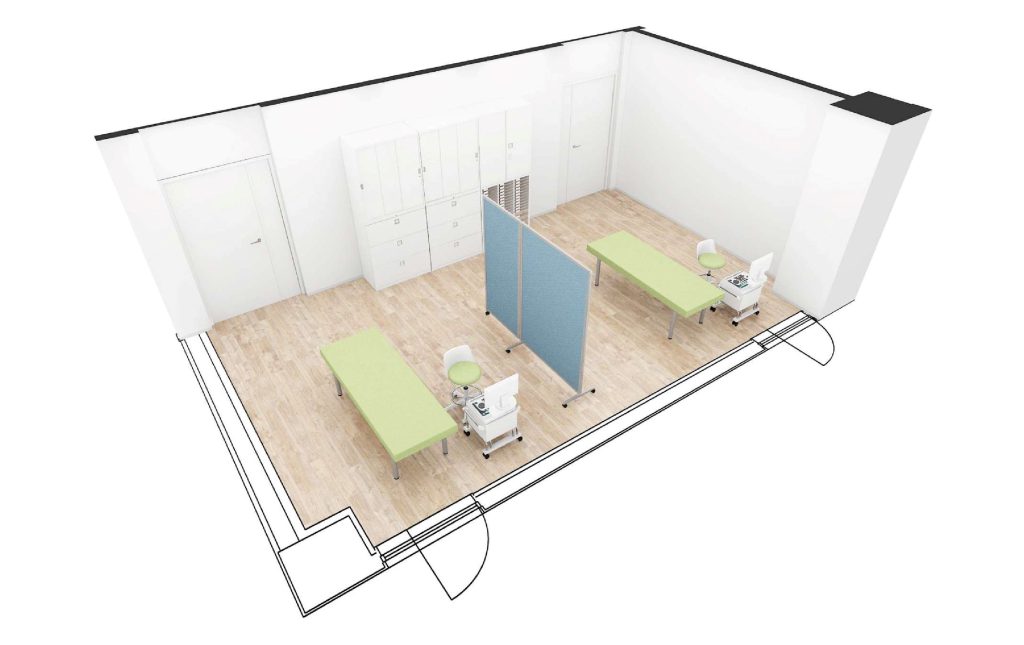 実習室のデザインは最新の病院の内装を参考に、落ち着いた雰囲気の実習室をコンセプトにしており、床は木目調の優しい雰囲気で統一したデザインになる予定です。