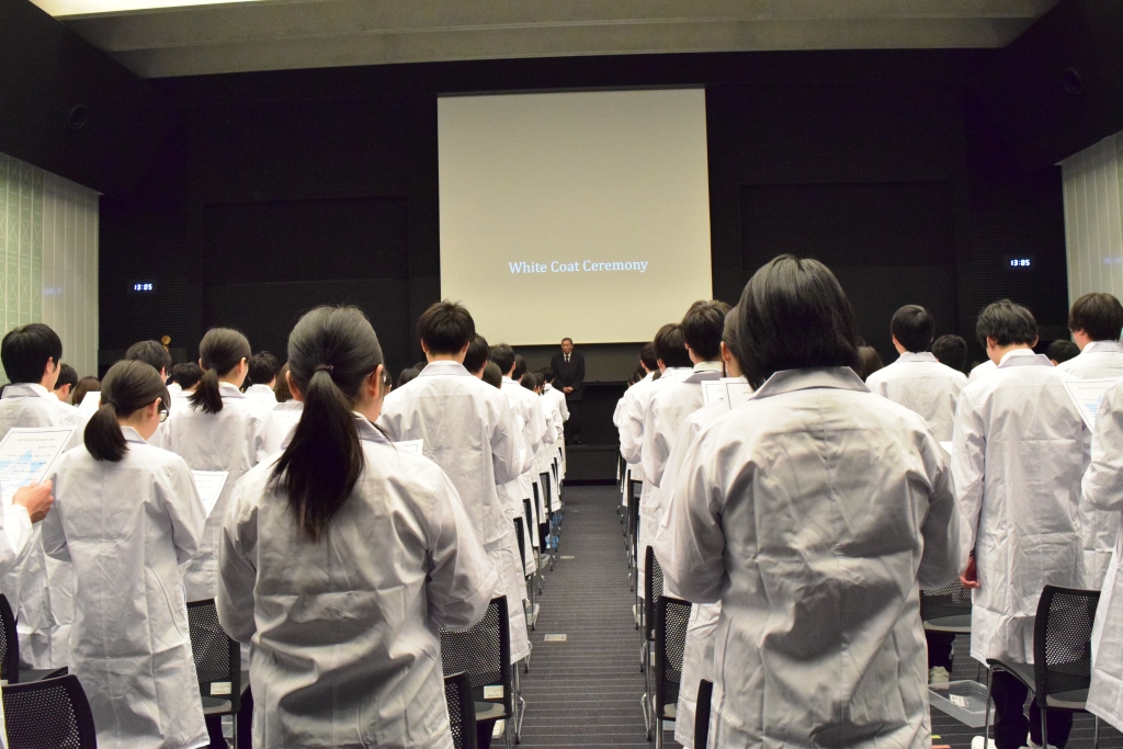 2月13日(水)、病院・薬局での長期実務実習に臨む薬学部新5年生を対象にWhite Coat Ceremonyを挙行しました。