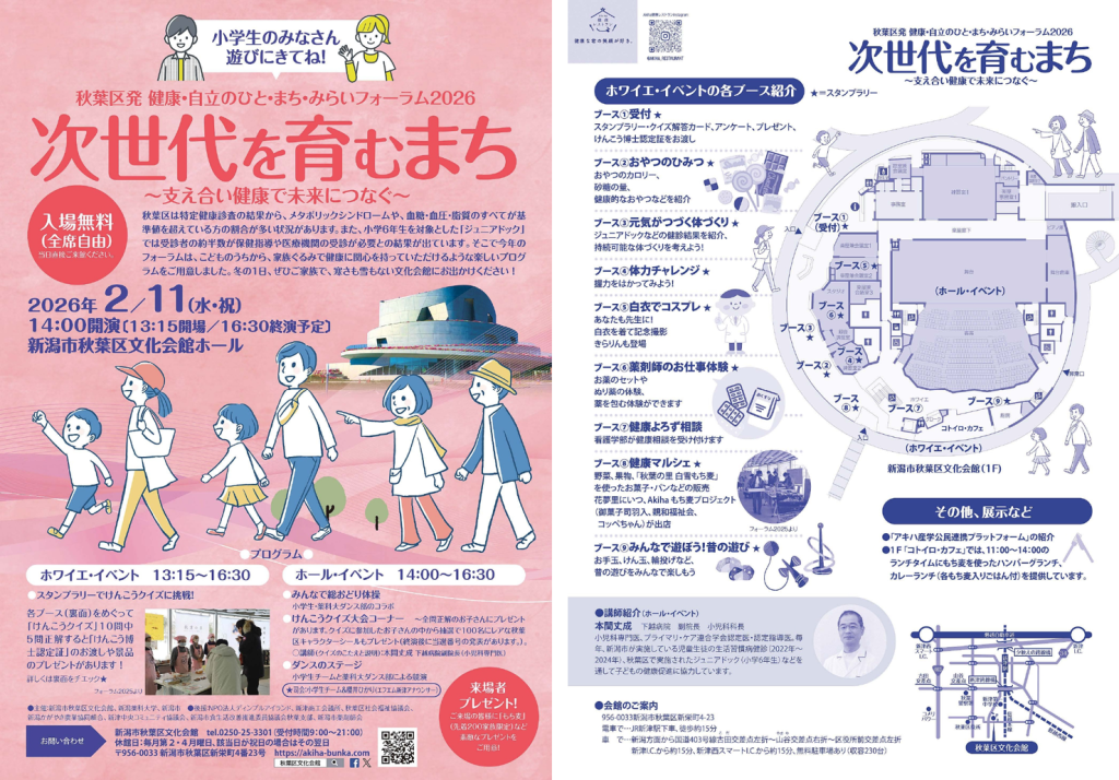 2026年2月11日(水・祝)、新潟市秋葉区文化会館にて『秋葉区発 健康・自立のひと・まち・みらいフォーラム2026』が開催されます。